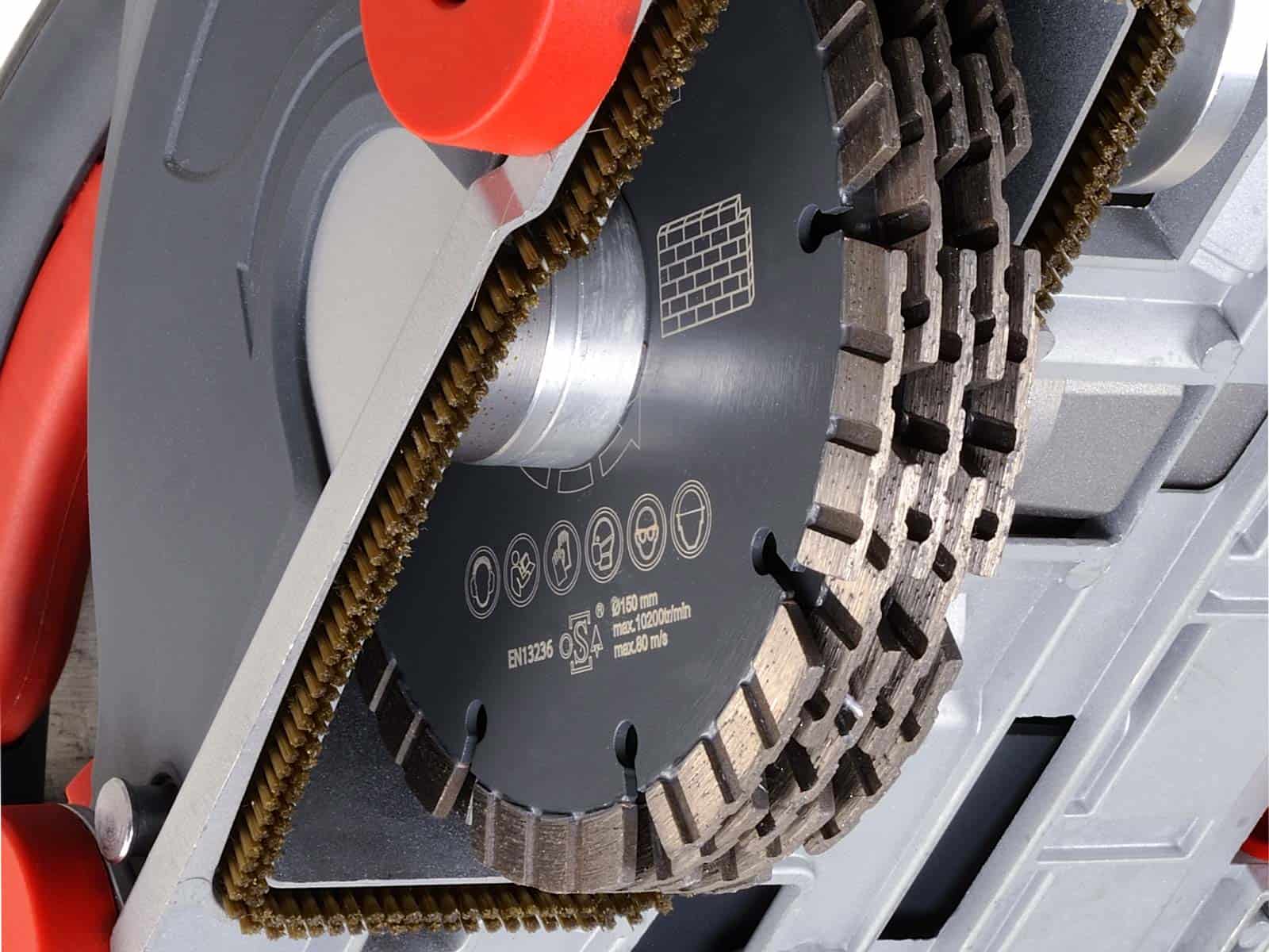 Przecinarka do rowków CG150 jest bardzo skuteczna i ma wyjątkową ochronę przed kurzem, z bezpyłowymi szczotkami na dole i prowadzona do portu próżniowego, który można łatwo podłączyć do węża odkurzacza (np. DE25 lub DEP25).