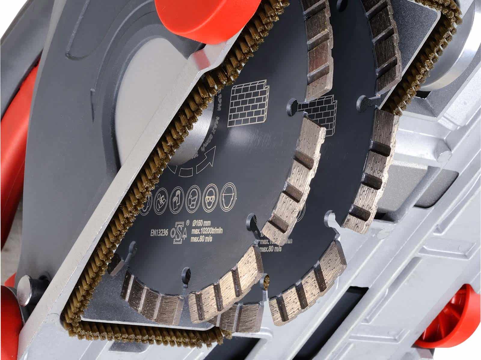 Zaletą jest zastosowanie dwóch lub pięciu tarcz z wykorzystaniem pierścieni dystansowych (pierścienie są dołączone). Wymiana dysków jest bardzo szybka i łatwa. Głębokość cięcia do 50 mm można łatwo regulować za pomocą przełącznika na rowku.
