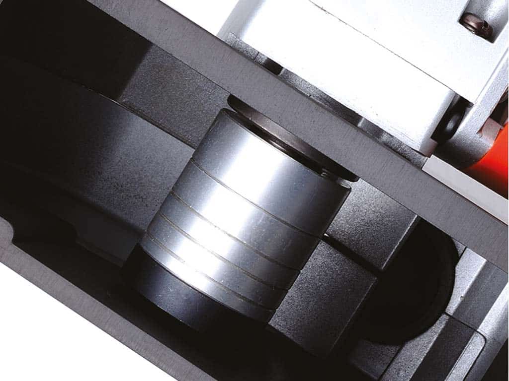 Koła obracają się w kierunku zgodnym z ruchem wskazówek zegara, co jest wielką zaletą do rowkowania w murze, na końcu frezowanego rowka bardzo łatwo jest również wyciągnąć rowek ze ściany. Na dole rowka znajdują się koła prowadzące dla lepszej pracy i łatwiejszego ruchu. Istnieje również połączenie z odkurzaczem w celu usunięcia kurzu z AGP lub innego poprzez wąż, który łączy sen z portem próżniowym, który automatycznie obraca się o 360 ° dla lepszej pracy.