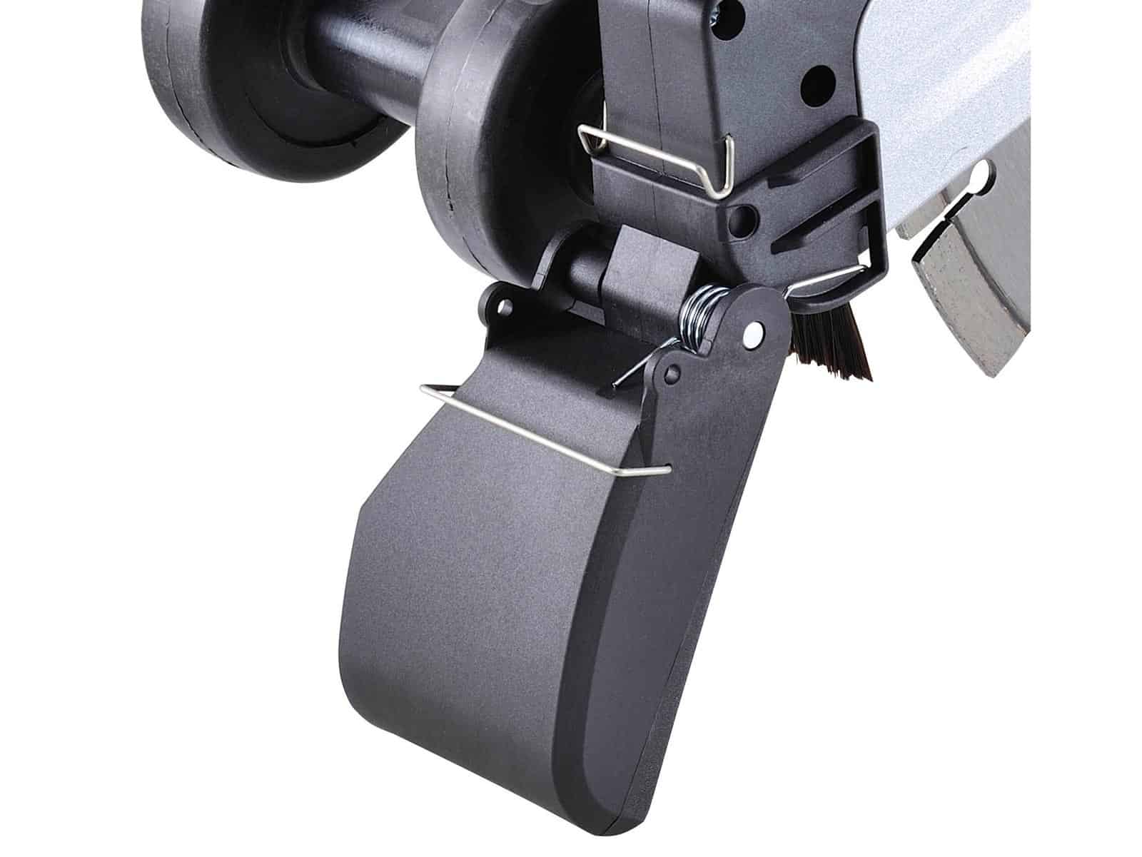 Wyważone uchwyty piły łańcuchowej zapewniają maksymalną kontrolę i idealną widoczność cięcia. Odłączane koła prowadzące ułatwiają trzymanie piły i zapewniają idealnie równomierne cięcie. Zintegrowany system zaopatrzenia w wodę pozwala precyzyjnie dostroić dopływ wody, aby uzyskać dobre usuwanie brudu. Aby zamknąć wodę, z tyłu osłony ostrza znajduje się elastyczna osłona przeciwbryzgowa oraz szczoteczka, którą można szybko zdjąć w celu łatwego czyszczenia.