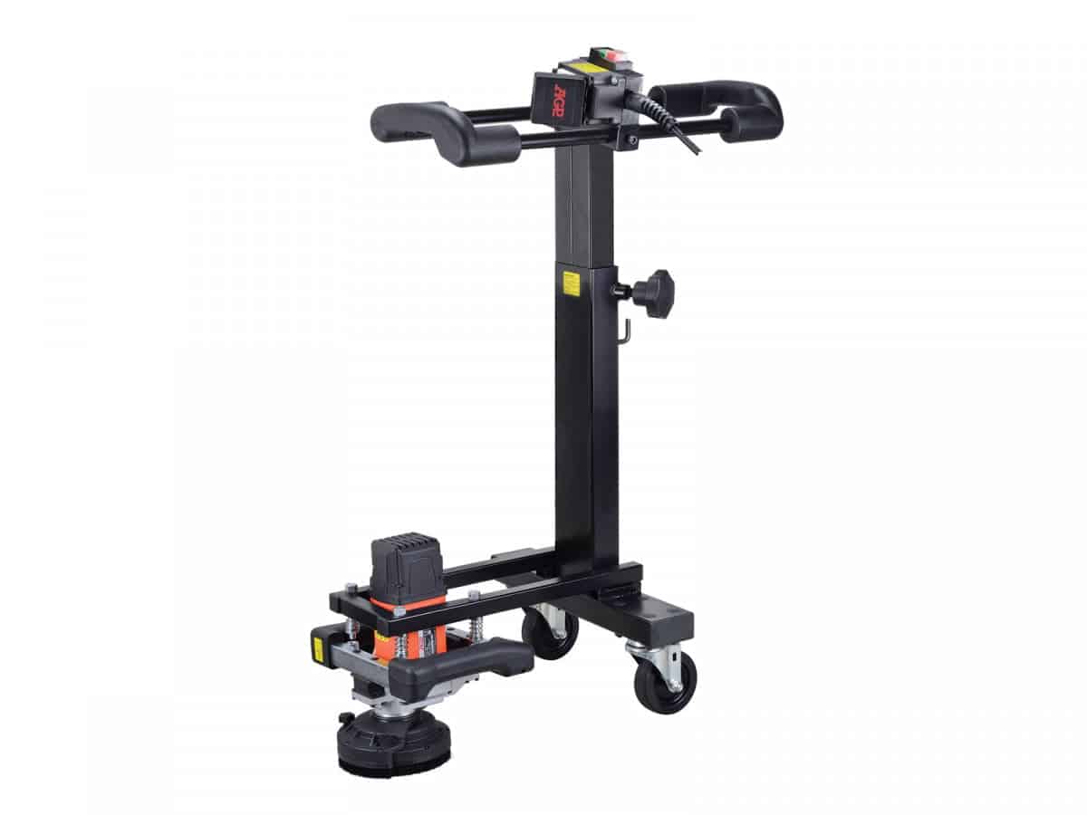 Opcjonalna szlifierka do podłóg do szlifierki do betonu może być używana z szlifierką do betonu , co umożliwia bezproblemowe szlifowanie podłogi w pozycji stojącej operatora. W tej konstrukcji operator wykorzystuje boczne uchwyty, które umożliwiają znacznie lepszą kontrolę ruchu młynka i większą dźwignię. Obrót wózka zapewnia 2 koła, a jego elastyczne zawieszenie pozwala na idealne trzymanie maszyny równolegle do powierzchni roboczej. Dzięki osobnemu wyłącznikowi głównemu i hakom do przytrzymywania węża próżniowego szlifowanie betonu jest bardzo wygodne.