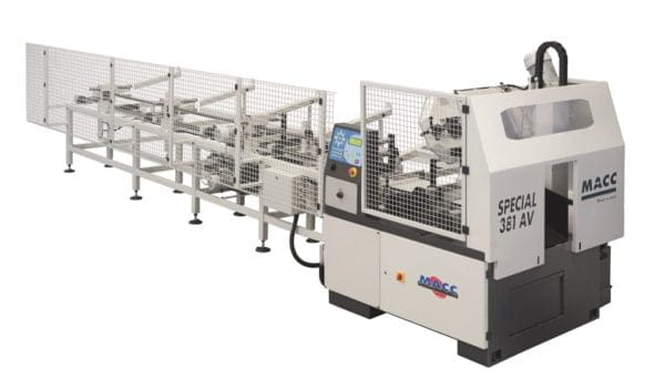 Ładowarka z pochyłym stołem do pił taśmowych i przecinarek, do załadunku okrągłych, kwadratowych, prostokątnych prętów (profili lub pełnego materiału).