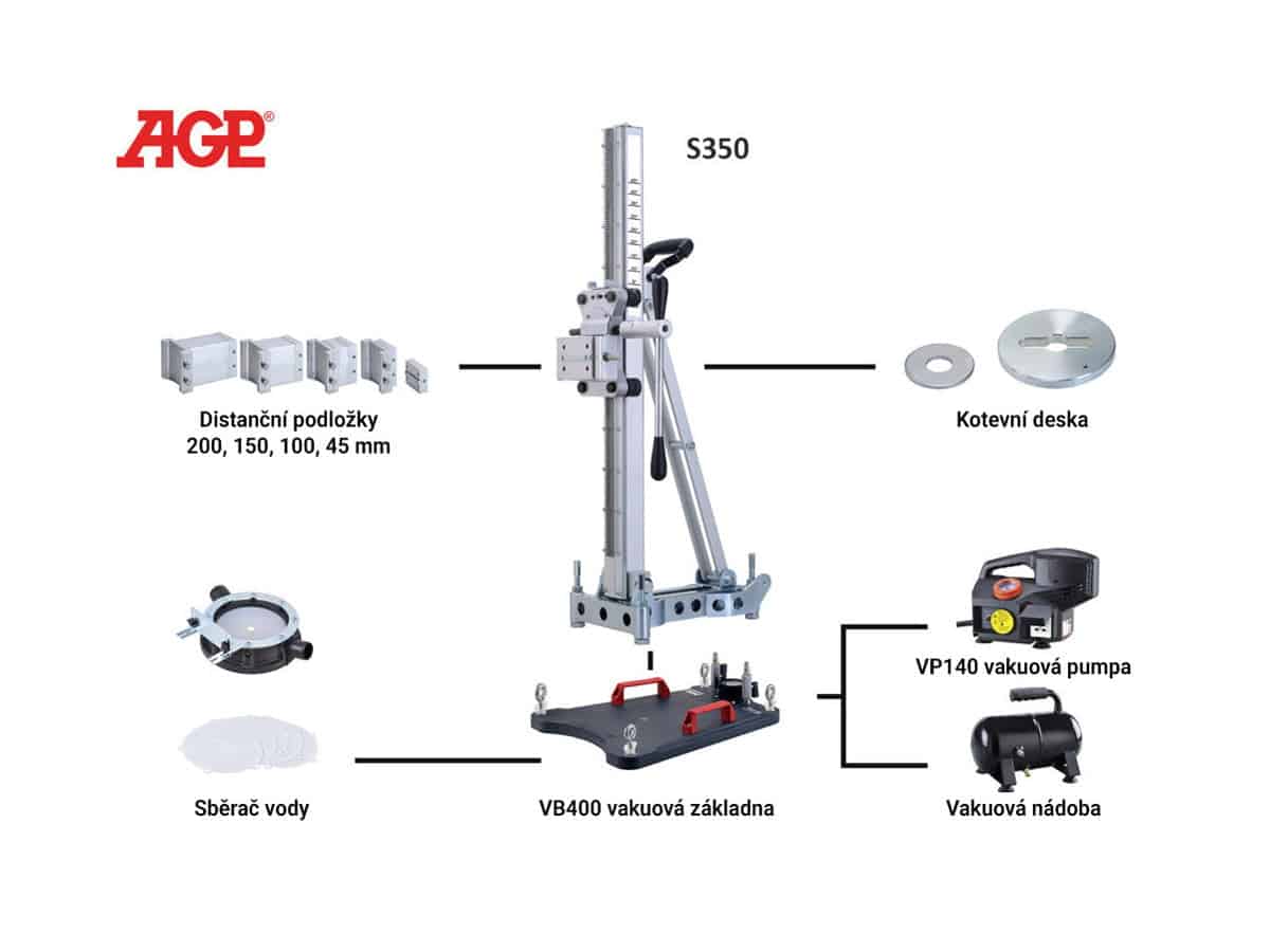 Płyta kotwiąca do stabilnego mocowania stojaków wiertniczych. Należy używać z zestawem do mocowania. Zalecany do stosowania ze stojakami AGP ze stalową podstawą, np. S170, NS250, S350, S500 i S800.