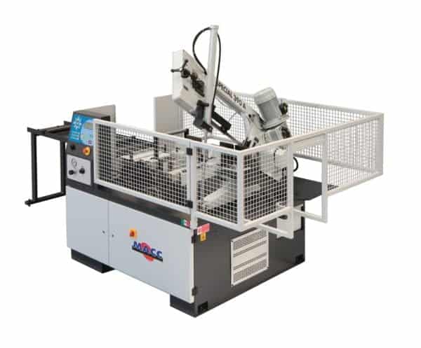 - Automatyczna piła taśmowa CNC wykonująca cięcia od 0° do 60 ° w prawo i wyprodukowane zgodnie z aktualnymi standardami bezpieczeństwa